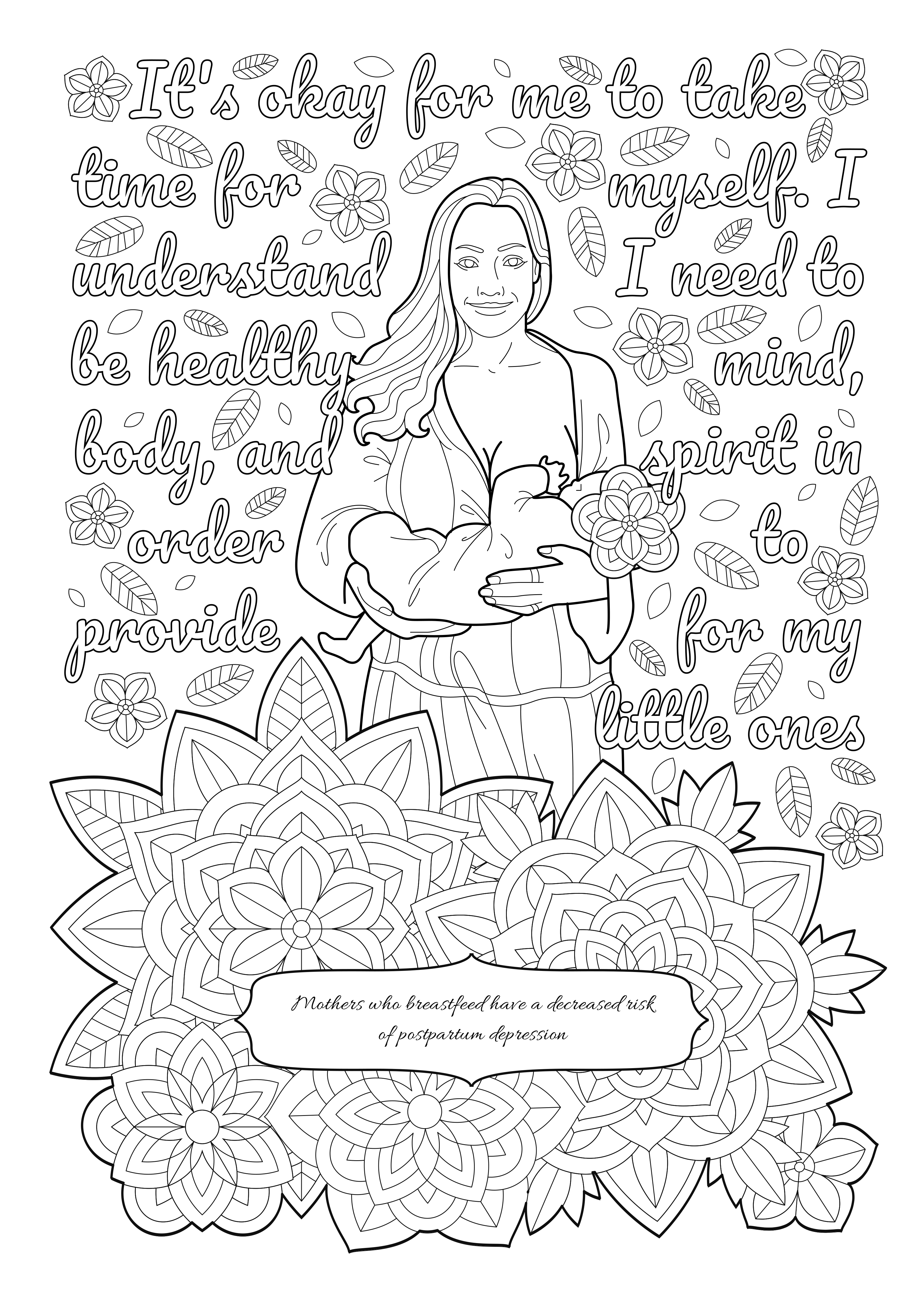 Per questo progetto ho ridisegnato le foto delle madri e dei loro bambini in illustrazioni da colorare, decorate da mandala e arricchite di informazioni e affermazioni interessanti sul tema.
